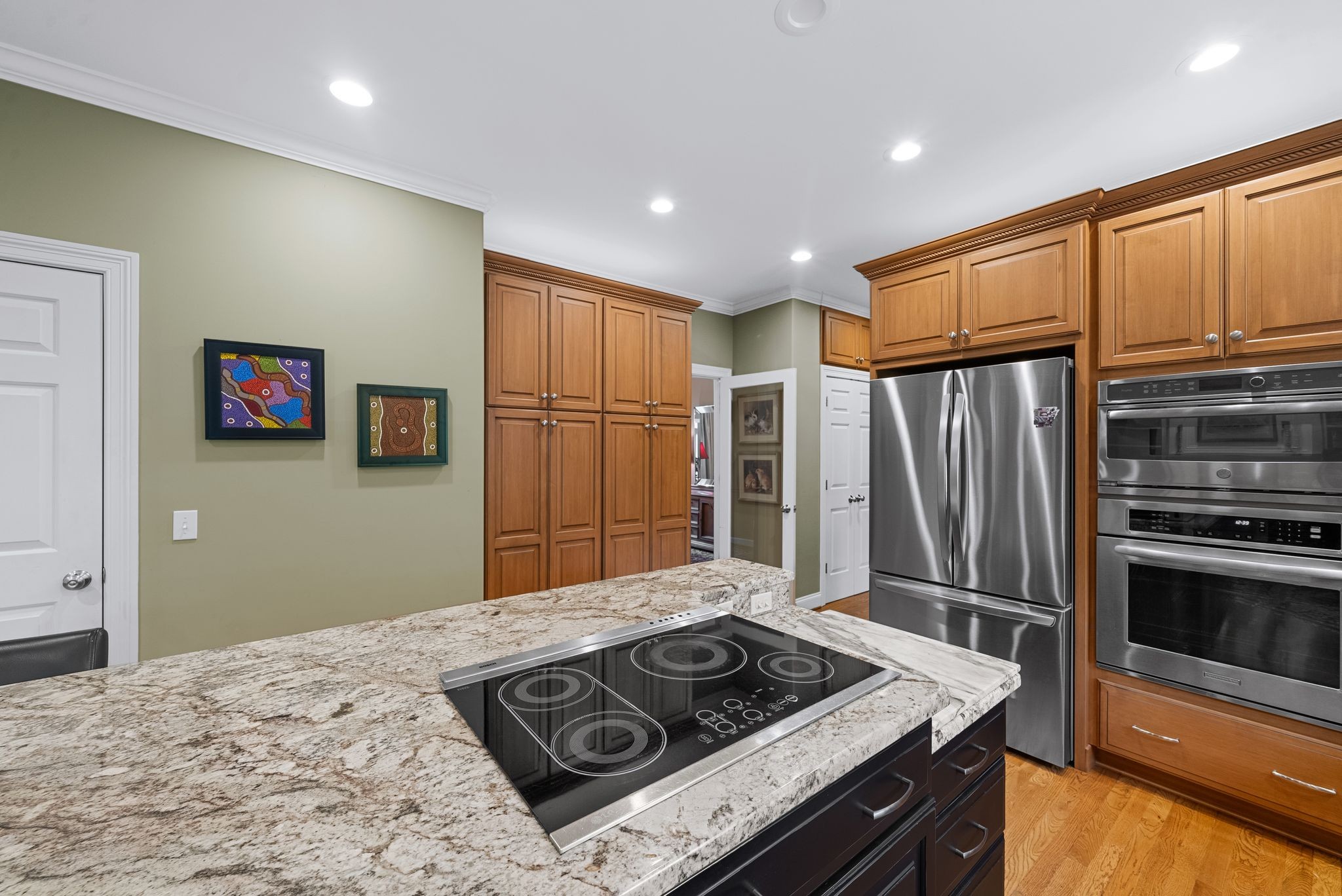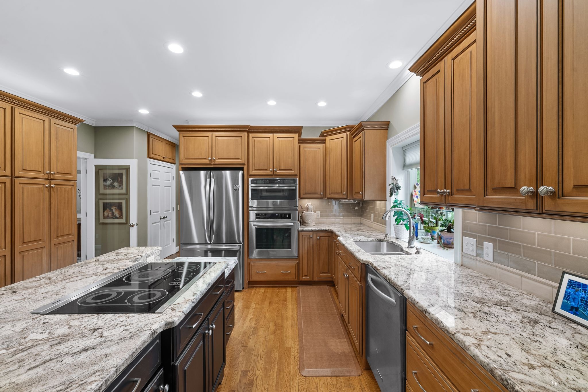 Appliances: Built-In Electric Oven, Cooktop, Dishwasher, Disposal, Microwave, Refrigerator