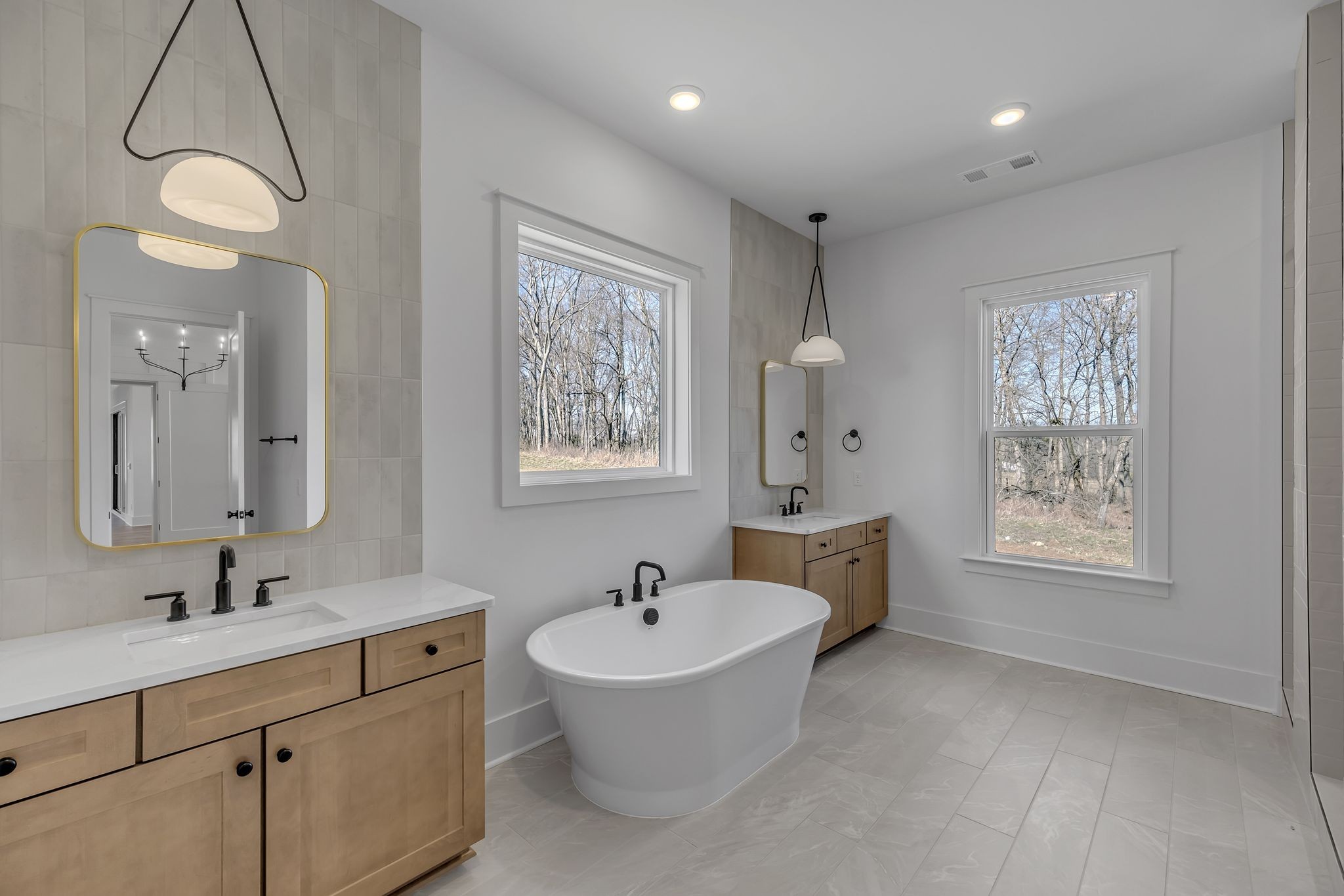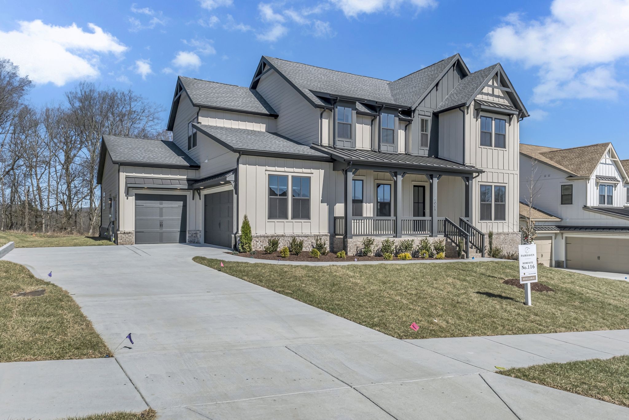 Welcome to Fairhaven - Luxury Series by Dream Finders Homes. Lot 116 -Move-in Ready 6BD/5.5BA Luxury Home | Tree-Lined Backyard | Gated Community - This home is ready for immediate move-in and sits on a premium homesite with a serene treeline view. Thoughtfully designed, it features a main-level primary suite with two walk-in closets--one connecting directly to a spacious laundry room--as well as a spa-inspired bath with oversized "super" shower, freestanding tub and dual vanities. A guest bedroom with en-suite bath and dedicated office are also on the main level. The open living space boasts expansive glass sliders to the screened rear patio with fireplace. The kitchen showcases quartz countertops and extended cabinetry in the breakfast area with a wine fridge. Set in the exclusive, gated 49-homesite community of Fairhaven in charming Thompson's Station, this home offers the tranquility of a country setting with quick access to I-840, I-65, and downtown Franklin. Fairhaven enjoys the tranquility of 38 acres of surrounding greenspace and will include a scenic walking path to the nearby Bethesda Rec Center, offering soccer fields, tennis, pickleball, volleyball--and soon, an indoor pool, gym, and more.